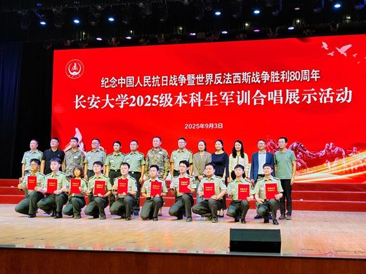 9月3日,美加墨世界杯官网2025级本科生军训合唱展示活动在北校区长安文化艺术中心大礼堂举行,公司八营代表队用琵琶铿锵,铮铮歌声,合唱《弹起我心爱的土琵琶》《敢当》,以旋律质朴优美与铁血报国豪情兼备,以总分第一名的成绩,获得了“先锋团队奖”,敬献中国人民抗日战争暨世界反法西斯战争胜利80周年。