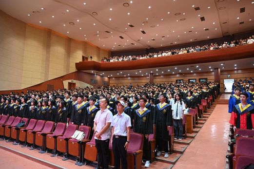研究生代表董俊龙和本科毕业生代表郭静怡分别发言,他们感谢了入学以来帮助自己的老师和同学,回顾了求学道路中的成长与挫折,承诺将始终牢记校训精神,勇敢投身祖国建设,在各自领域发光发热,用勇气和智慧书写无愧于时代的信息篇章。