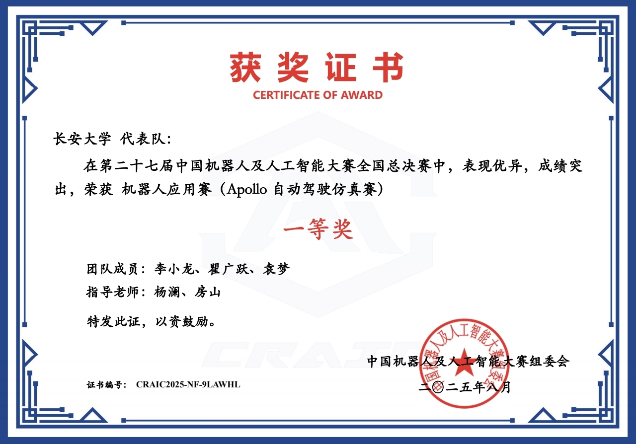 2025年8月,第二十七届中国机器人及人工智能大赛全国总决赛获奖名单公布。公司三支团队参加机器人应用赛项——Apollo自动驾驶仿真赛,分别斩获全国一等奖1项、二等奖2项,延续了公司在该项赛事的优异表现。