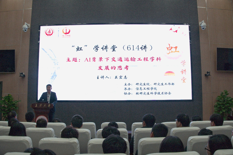 3月14日下午,由研究生院、研究生工作部主办,公司承办,校研究生科学技术协会协办的“虹”学讲堂第614讲在北校区师生服务大厅第二报告厅顺利举办。应公司副经理徐志刚教授邀请,北京工业大学建工公司教授、博士生导师,公司知名员工关宏志为公司师生作了题为“AI背景下交通运输工程学科发展的思考”的报告,运输工程公司经理葛颖恩、运输公司陈红教授、电子与控制工程公司副经理路庆昌等专家领导出席了本次讲座,公司党委副书记郭咏梅担任讲座主持,相关公司共160余名师生参加讲座。