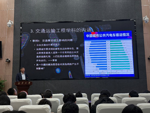 在交通需求变化方面,关宏志教授指出,城市停车位规划等因素对公共交通出行需求有着显著影响。即使拥有优质的公共交通系统,若城市过度追求停车位的充足供应,人们依然可能倾向于选择开车出行,这充分表明交通问题之间相互关联且影响复杂。此外,看似前景良好的停车位错时共享,在实际推行过程中,因涉及车位产权、小区物业、业主权益和收益分配等诸多问题而举步维艰。关宏志教授还借助 “隔壁老王运红薯” 和 “老王修路” 的故事,通俗易懂地阐述了 “交通” 和 “运输” 的关系,并介绍了我国交通工程专业的发展历程,让听众对学科内涵有了更深入的理解。