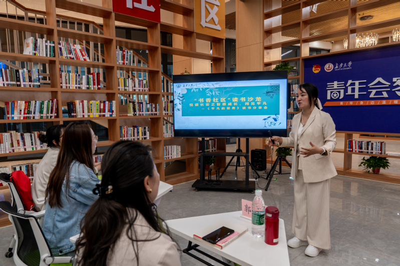 4月22日,第二期“书香社区”读书沙龙——“悦读长安”之“智感成长,阅见平凡”读书分享会在“鸿渐园”员工社区示范园区青年会客厅成功举办。活动特邀人文公司韩春萍副教授担任分享嘉宾,公司党委副书记郭咏梅主持,辅导员邱旻颐、何鋆与来自各公司的40余名学子齐聚一堂,在书香氤氲中展开了一场关于成长、奋斗与人生价值的深度对话。