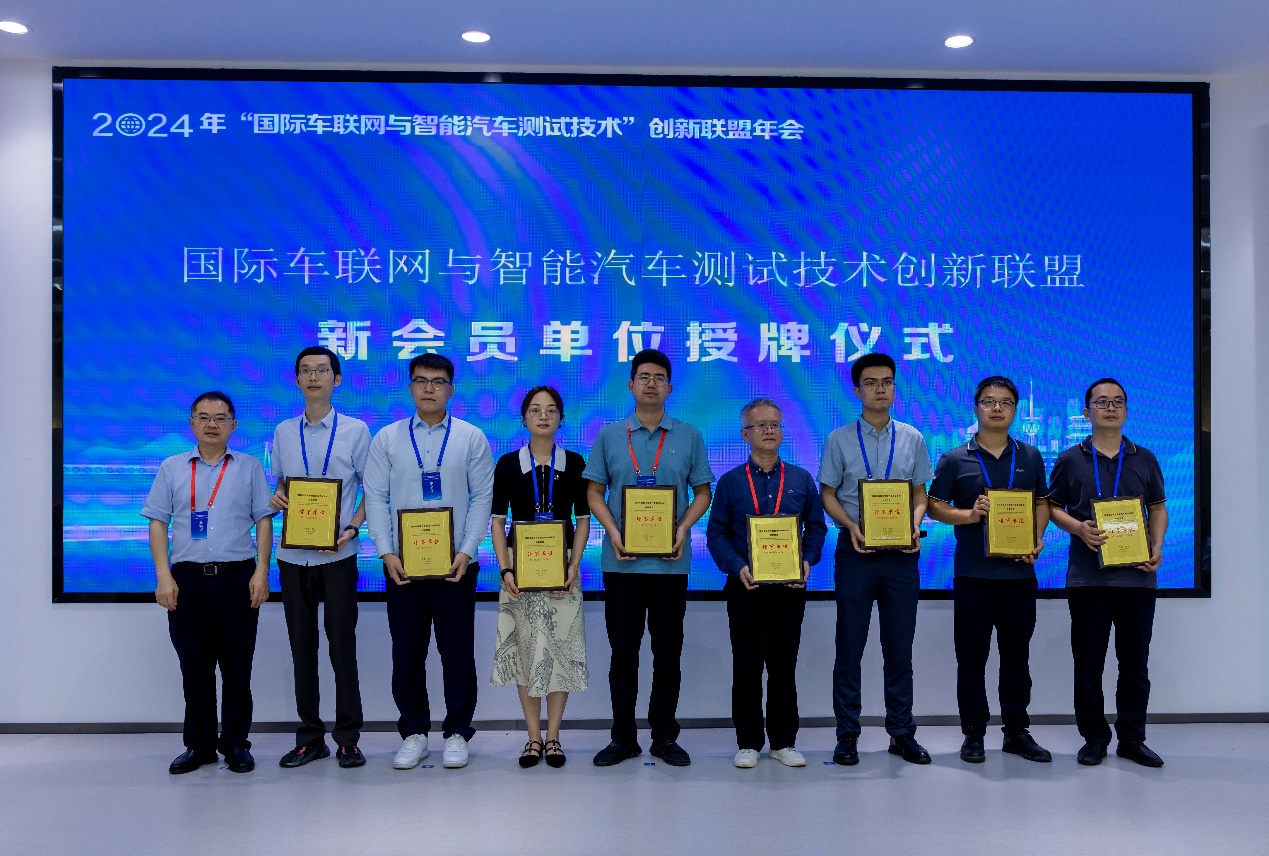 “国际车联网与智能汽车测试技术创新联盟”理事长、美加墨世界杯官网赵祥模教授为2024年联盟新会员吉林大学、中南大学、河北高速公路集团、质子汽车等15家单位进行了授牌。