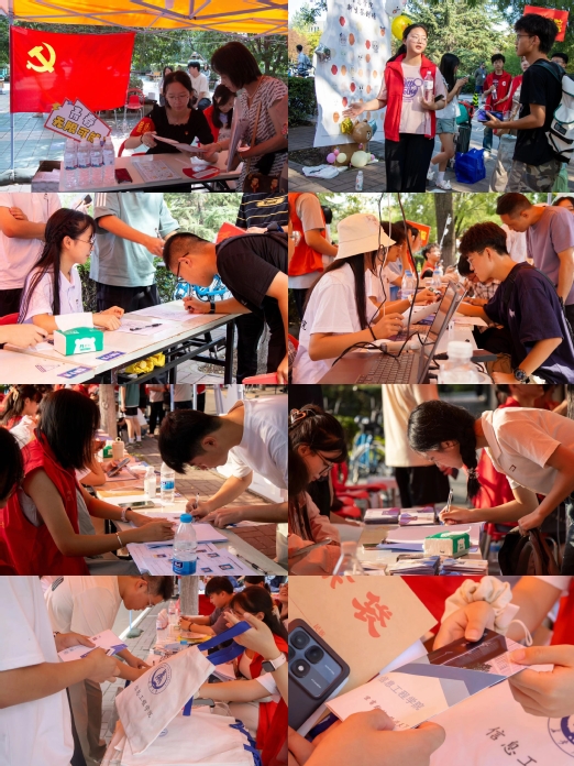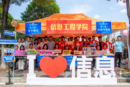公司为新生发放纪念帆布袋,钥匙扣,迎新手册等资料和伴手礼,帮助新生更好地熟悉校园环境。在迎新点旁设置的签名墙、背景墙等“打卡”地,也留下了家长和新生在“长大”的第一个足迹。