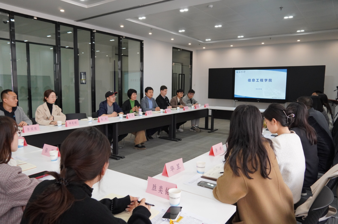 欧建东对陈沛一行来院调研表示热烈欢迎,他简要的介绍了西北大学信息公司的基本情况、并就两院学工队伍交流合作进行了深入探讨;杨帆以党建引领与科研工作深度结合、组建党员宣传团等为例,详细介绍了本公司党建创新品牌和特色做法;辅导员蒋晨阳介绍了公司在毕业生就业、考研升学、职业生涯规划等方面所做出的探索、努力和成就。