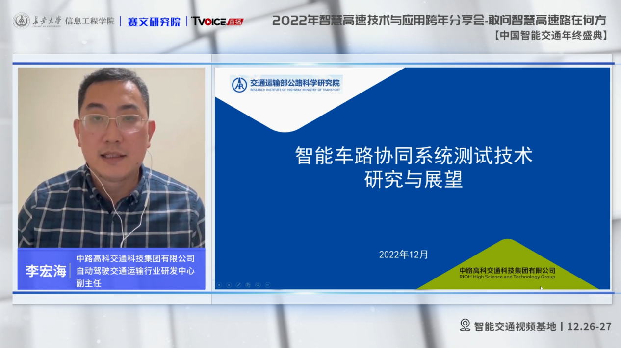 中路高科交通科技集团有限公司自动驾驶交通运输行业研发中心副主任李宏海在《智能车路协同系统测试技术研究与展望》的演讲中,介绍了智能车路协同系统、测试技术研究现状、测试技术发展展望等内容,他指出关于测试指标和测试方法目前已经开展大量研究工作,随着示范应用的不断深入,需要进一步优化和调整。