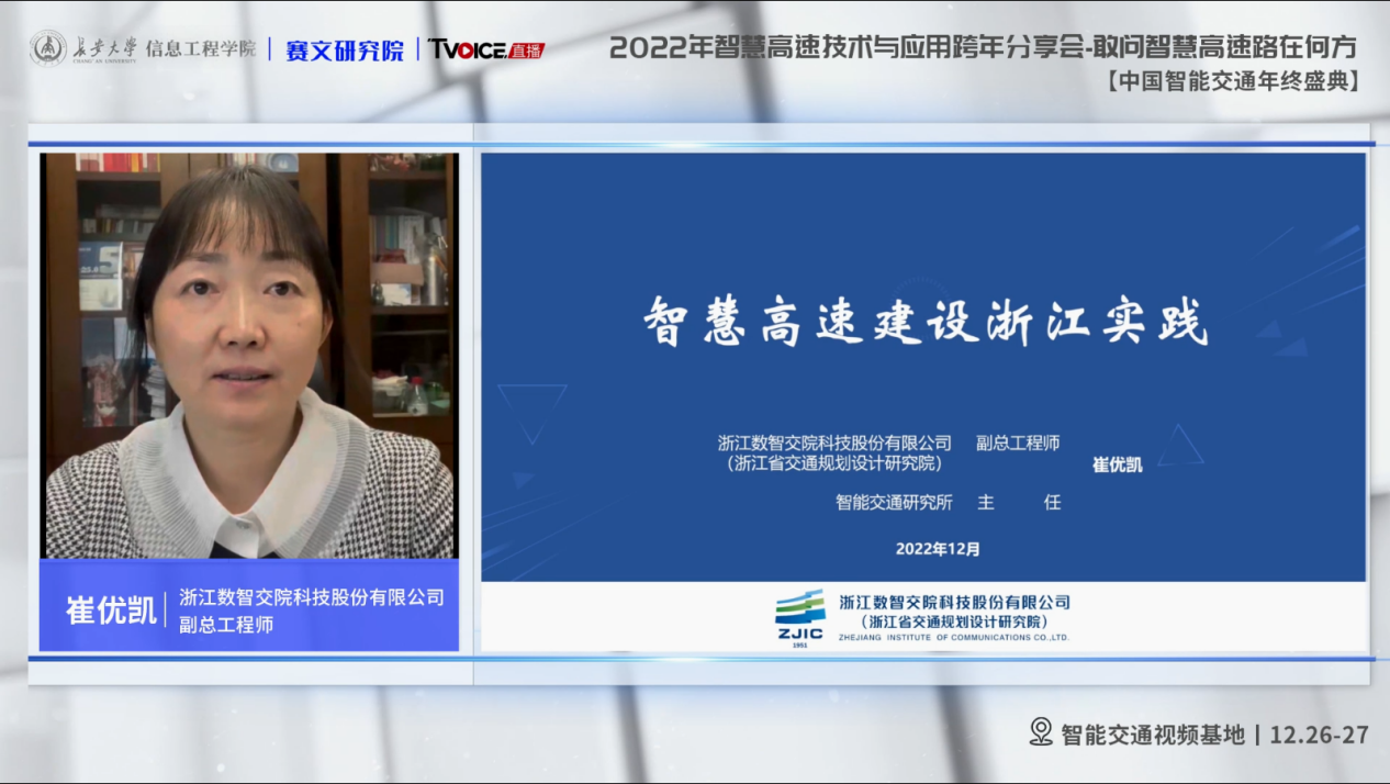 浙江数智交院科技股份有限公司的副总工程师崔优凯发表了《智慧高速建设浙江实践》,对我国智慧高速内涵解读、建设实践、建设规划、未来展望方面做了分享,并指出智慧高速公路的“智能、快速、绿色、安全”总体目标是已成为行业共识。