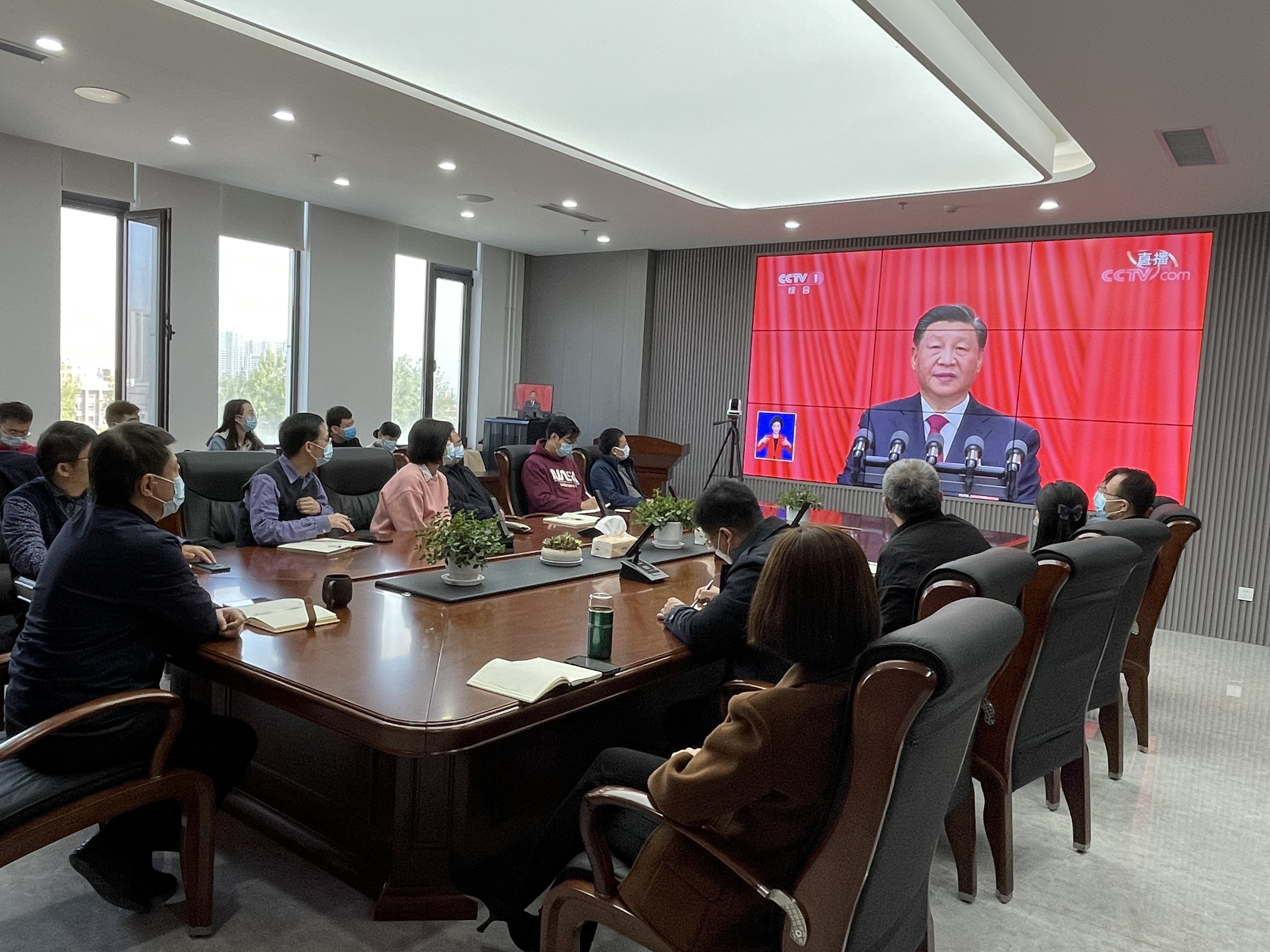 公司领导班子成员和全体党支部书记集体收看开幕会直播