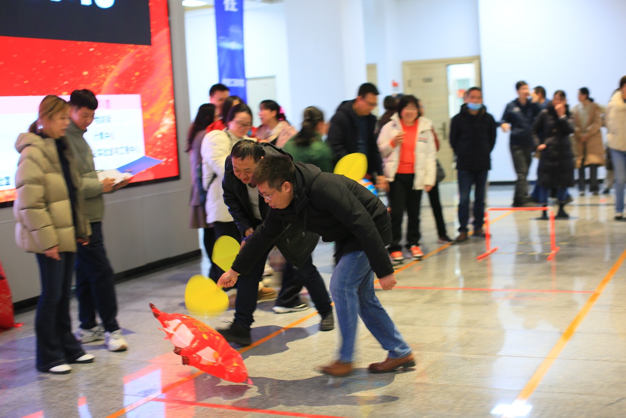 为激发全员参与热情,本次年会创新设置“小组权重+个人权重”双重抽奖机制,打破传统随机性——各工会小组自带基础积分,通过参与三项趣味游戏累计加分,个人上场次数直接关联中奖权重,独特规则让现场氛围持续升温。游戏环节中,各小组分工协作、默契配合,在轻松互动里传递新年期许,为该环节画上圆满句号。