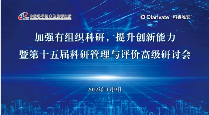 为此,中国科学技术信息研究所、科睿唯安、ISTIC-CLARIVATE科学计量学联合实验室将于2022年11月9日在线上共同举办“加强有组织科研,提升创新能力——暨第十五届科研管理与评价高级研讨会”。