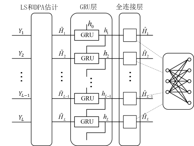 提出了基于深度学习的DPA-GRU信道估计方案,首先进行LS和DPA信道估计,初步估计出信道响应,再采用GRU层对DPA估计的初始信道响应进行降维和误差补偿,最后通过全连接层恢复到原始维度,从而消除误差传播问题得到更准确的信道响应估计结果。