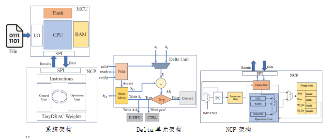 本研究基于Tiny Machine Learning(TinyML)架构,在边缘MCU平台上实现了一个德尔塔循环神经网络(DRNN)来实现算术码压缩。该DRNN能够通过对网络神经元剪枝和压缩,显著减少计算复杂度。另一方面为了加速深度学习推理,设计了一个基于ASIC的神经协处理器(NCP)。NCP拥有独立指令级并能够被集成到整体IoT系统中,完成对网络权重和特征的提取和存储。实验结果表明该系统能够在极低功耗下实现极高的压缩速率,整体性能超越同类的FPGA系统和嵌入式系统。