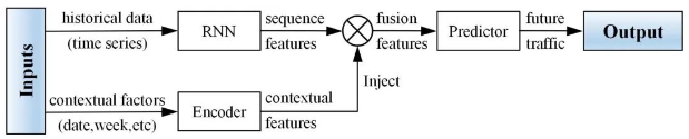 该论文以复杂环境下的交通状态为研究对象,充分考虑了时空因素的重要影响和循环神经网络在时间序列分析领域的优异性能,提出了一种新型的特征注入循环神经网络(FI-RNNs)模型,通过融合交通流速度序列数据及其上下文因素来挖掘交通流状态与其上下文之间的潜在关系。