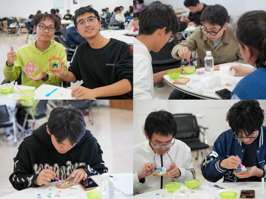 活动现场,工作人员为参与同学分发了水晶玻璃马赛克颗粒、底托、胶水等DIY材料包。同学们以色彩为情绪表达载体,通过挑选、排列、粘贴马赛克颗粒完成创作:或选用明亮色调传递愉悦心境,或采用渐变色彩表达细腻思绪,或借助不规则拼接释放内心张力。在专注的手工创作过程中,同学们沉淀浮躁情绪,舒缓心理压力,最终完成了一个个独具个性的马赛克杯垫,这些作品既凝聚了动手实践的乐趣,也成为情绪表达的独特载体。