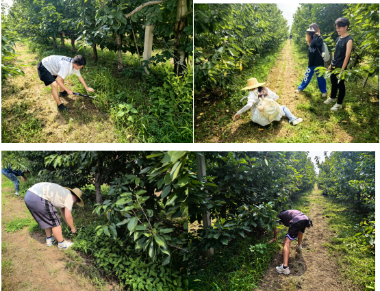 完成基础户外劳动培训后,在劳动指导老师的带领下,员工们走进劳动基地的果园开始清理杂草。员工手持镰刀,弯腰割草的动作从略显生疏到逐渐熟练。有人主动调整姿势提高效率,现场充满“嚓嚓”的割草声。通过这场辛勤劳动同学们更是领悟到“一粥一饭,当思来之不易;半丝半缕,恒念物力维艰”的深刻内涵。