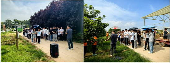 活动伊始,实践基地负责人通过现场讲话强调劳动纪律与安全规范培训,主要内容包括户外劳动注意事项、劳动工具操作要点、应急处理方法等内容。讲话结束后,他示范劳动工具操作细节和割草采摘等劳动要点,员工们认真记录,为后续劳动实践筑牢安全防线。