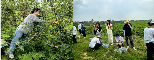 随后的果园采摘环节,在劳动指导老师讲解完采摘水果要点后,员工们就提着竹篮穿梭于果树间,亲手摘下饱满的果实。新鲜的水果红彤彤沉甸甸的挂在枝头非常诱人,同学们一边采摘一边已经有人忍不住席地而坐开吃了,品尝自己亲手采摘的水果更是格外香甜。同学们在这一刻也体会到了丰收的喜悦和劳动的价值。
