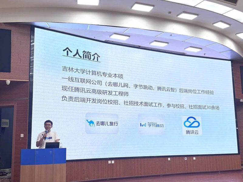 讲座围绕互联网行业校招趋势、职业发展路径及求职实战技巧展开。李欣宇首先分析了当前行业形势,指出AI互联网时代人才需求激增,但招聘市场更趋谨慎,强调求职者需精准定位岗位,结合自身优势选择适合的发展方向。他详细介绍了后端、前端、算法等岗位的职责与特点,并结合AI面试普及现状,建议同学们提前规划技术能力与项目经验。