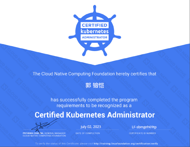 郭镕恺-CKA考试成绩单 郭镕恺-CKA证书图片