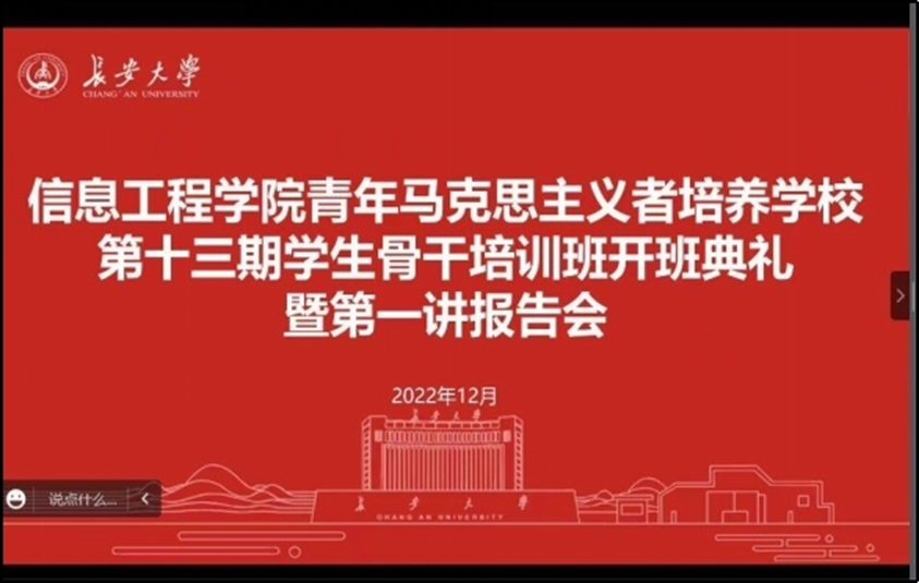 为深入开展共青团“学习党的二十大、永远跟党走、奋进新征程”主题教育,进一步推进青年马克思主义者培养工作,12月12日,美加墨世界杯官方网站举办青年马克思主义者培养公司第十三期员工骨干培训班开学典礼暨第一讲报告会。因疫情防控要求,本次开班典礼以线上形式举行。公司党委副书记、纪委书记、副经理杨玉龙,党委副书记陈沛,学办主任周平,团委书记杨加玉,各年级辅导员出席此次典礼。本次典礼由张俊青主持。