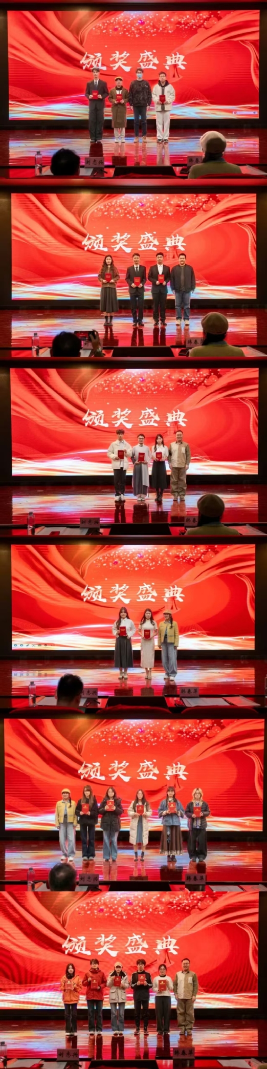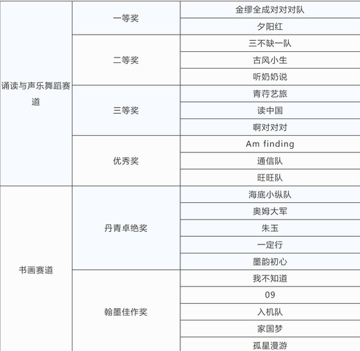 点评结束后,激动人心的颁奖环节如期而至。现场陆续揭晓了诵读与声乐舞蹈赛道的一、二、三等奖及优秀奖,以及书画赛道的丹青卓绝奖、翰墨佳作奖。嘉宾为获奖队伍依次颁奖,获奖队伍在热烈的掌声中接过荣誉,定格下青春奋斗的珍贵瞬间。