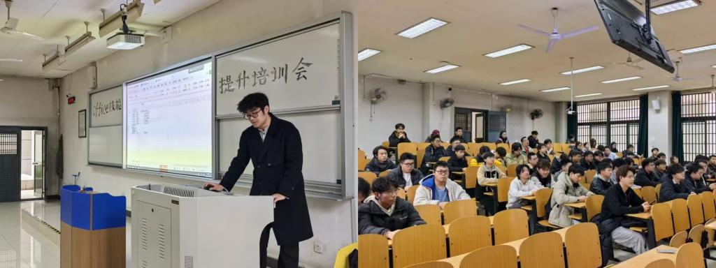 讲解结束后,邀请参会同学上台进行互动实操,主讲人在旁实时指导,及时纠正操作中的误区,帮助大家加深记忆、熟练掌握操作技巧。其余志愿者们认真听讲、详细记录,同步动手实操练习,现场学习氛围浓厚。
