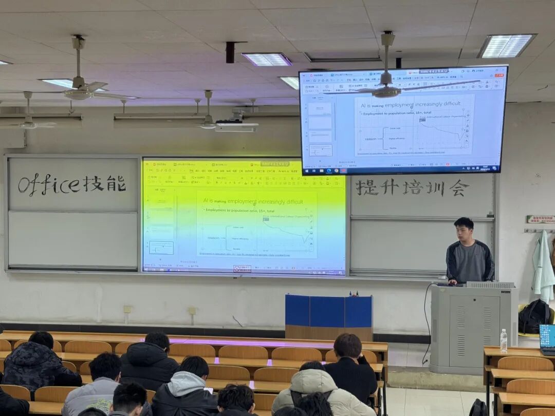 本次培训会上,王浩宇重点演示了PPT模板选用、版式布局、图文排版、动画与放映技巧,强调制作要简洁实用、突出志愿活动核心内容;李政军分享了PPT视觉优化小技巧,解决排版混乱、重点不突出等问题。随后王浩宇针对Word常用文档,讲解基础编辑、格式排版、表格、页眉页脚及修订保存等操作,结合常见问题示范规范排版;最后王浩宇围绕志愿服务数据需求,讲解Excel表格创建、格式设置、公式计算、排序筛选与图表制作等功能,结合实际场景演示数据处理,帮助志愿者提升办公技能与文档、数据规范化水平。